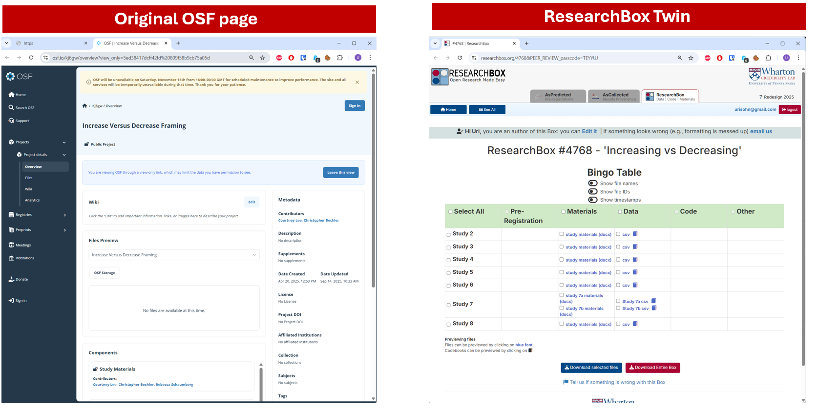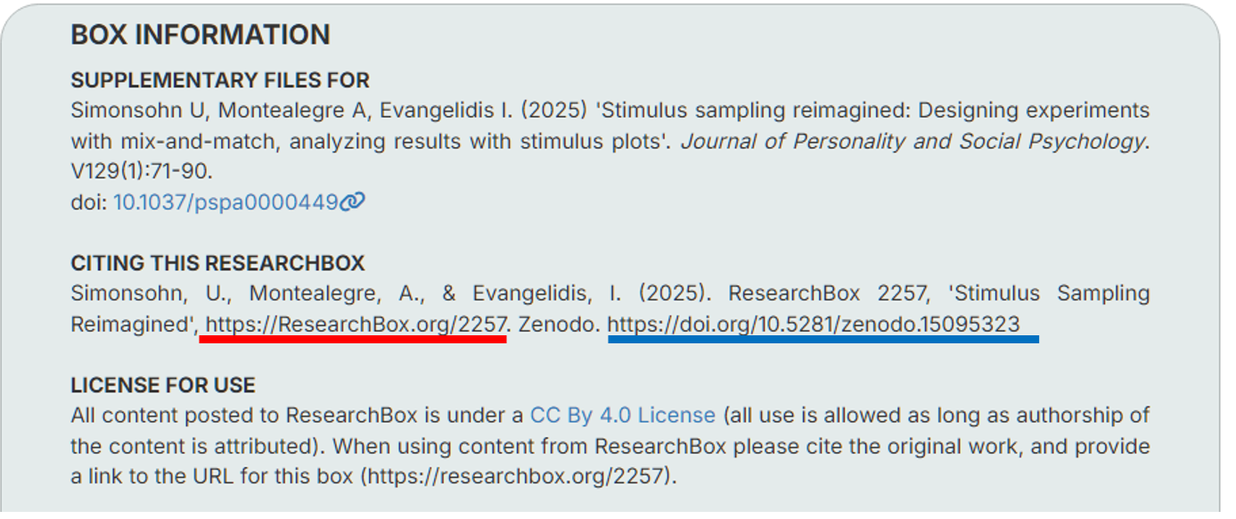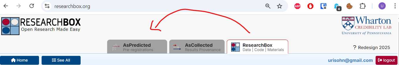 ResearchBox is hosted by the Wharton Credibility Lab, which I co-direct. We also host the pre-registration platform AsPredicted, and a new platform for results provenance we just launched, AsCollected. I will write about AsCollected in another blog post soon.