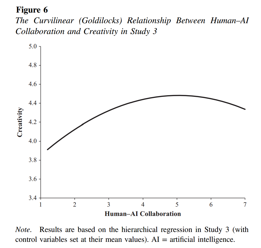 For a recent journal club in Barcelona, we read a just published article in the Journal of Experimental Psychology: General (JEP:G). The paper is on the impact of using gen-AI on creativity. The paper proposes an inverted U: people are most creative with moderate levels of AI use.